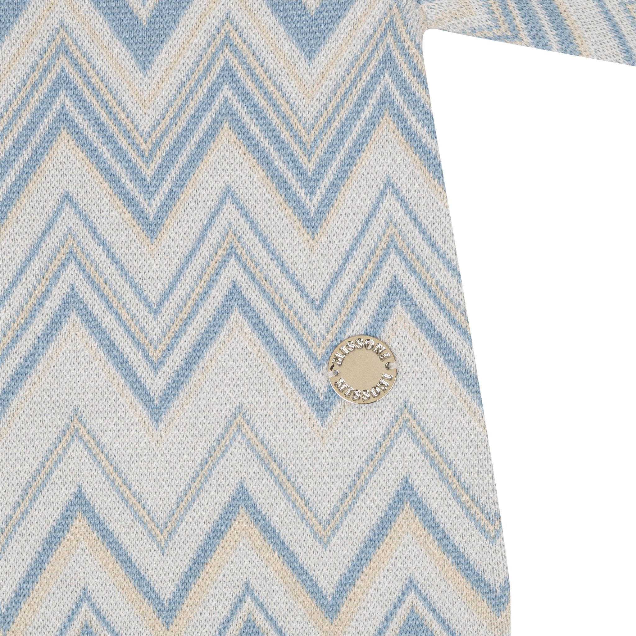 • White babygrow gift set for baby girls by luxury Italian brand Missoni. Made from soft cotton jersey, this set consists of babygrow with the brands logo print on the chest and iconic zig zag print pattern. Collared neck and fastens with poppers at the back. Matching hat and comes beautifully presented in a branded giftbox.