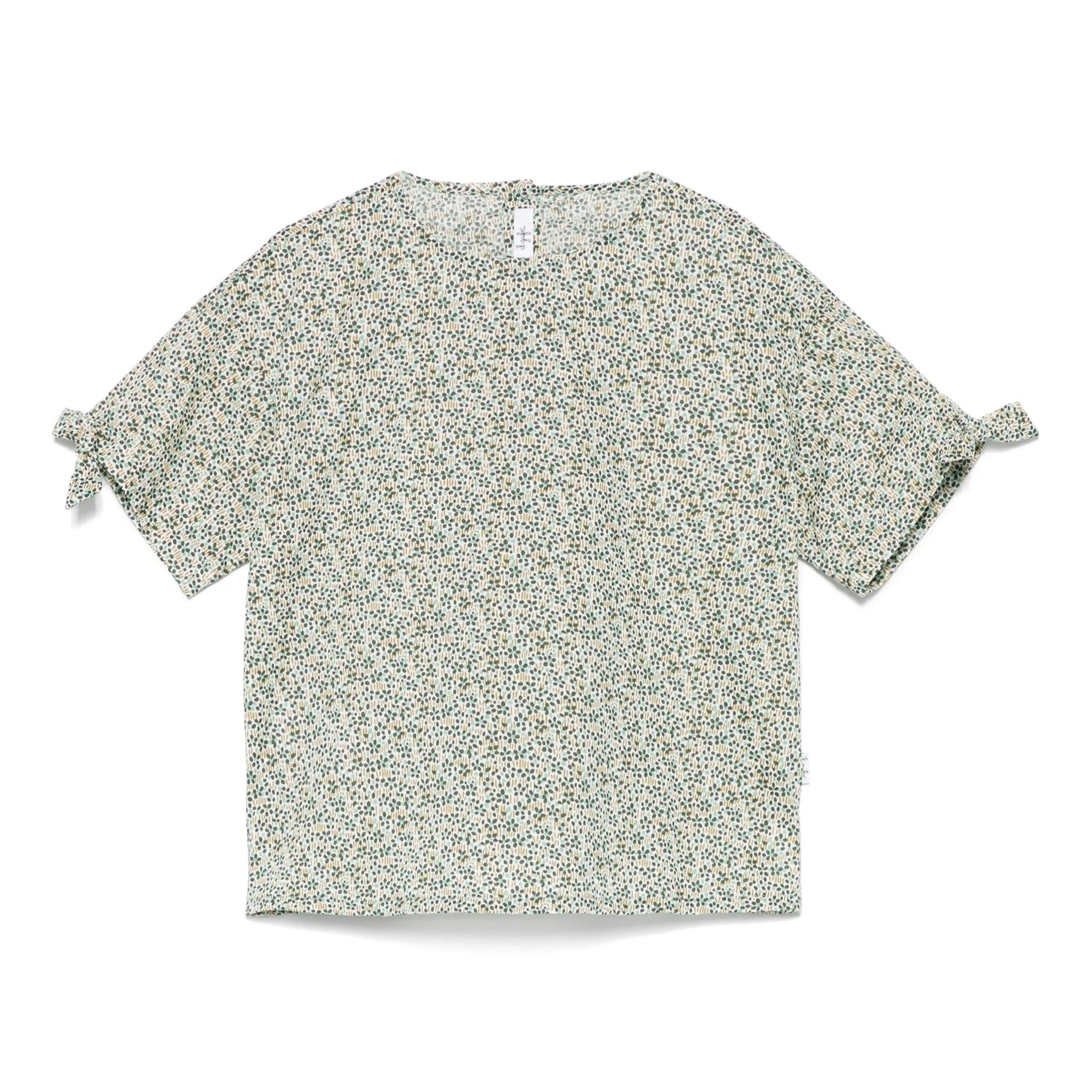 • Flared top in Liberty Fabric, featuring back button closure and embellished with small bows on the sleeves.