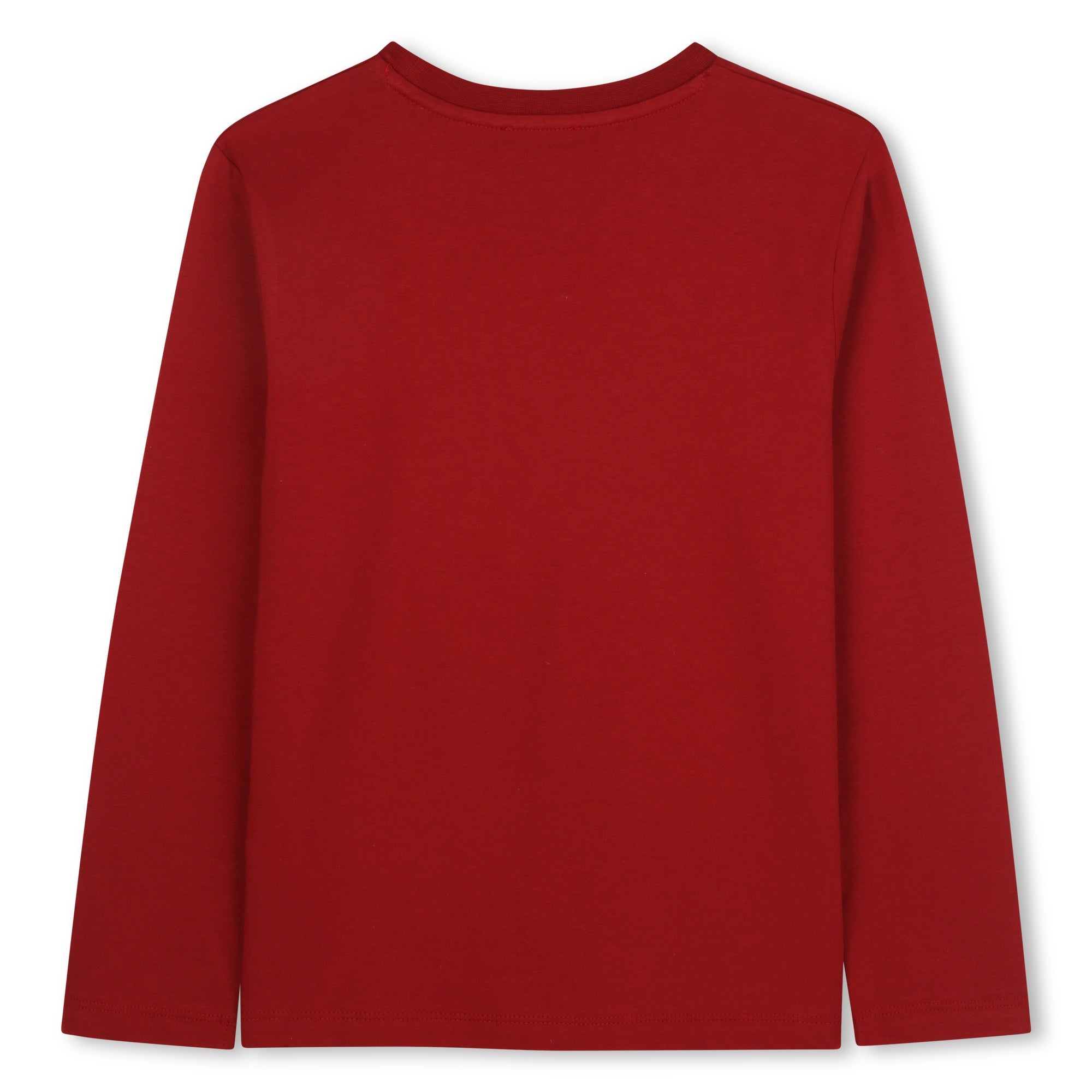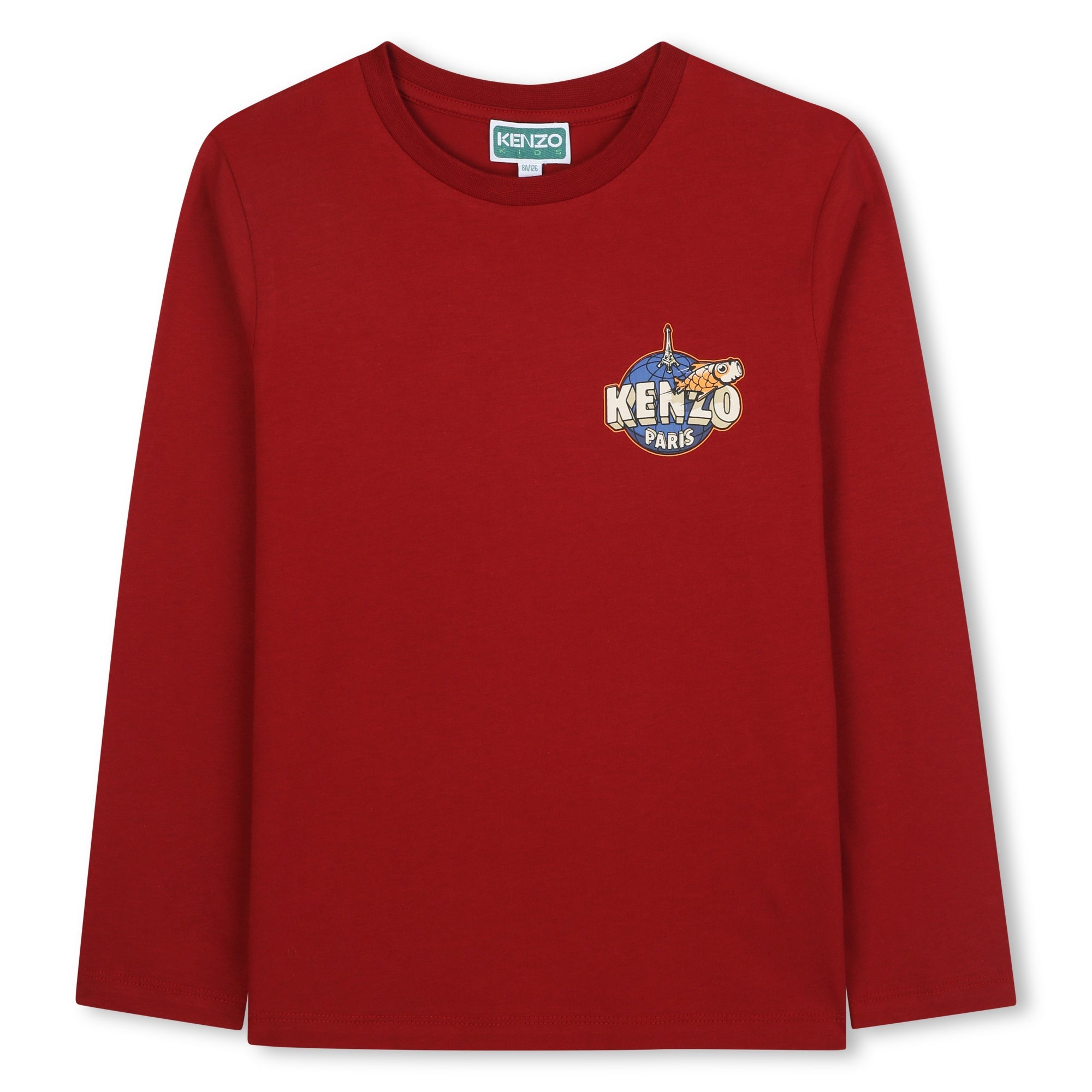 Red t-shirt for boys by KENZO KIDS. Made from soft organic cotton jersey, it features the brands cosmic logo graphic print on the front.