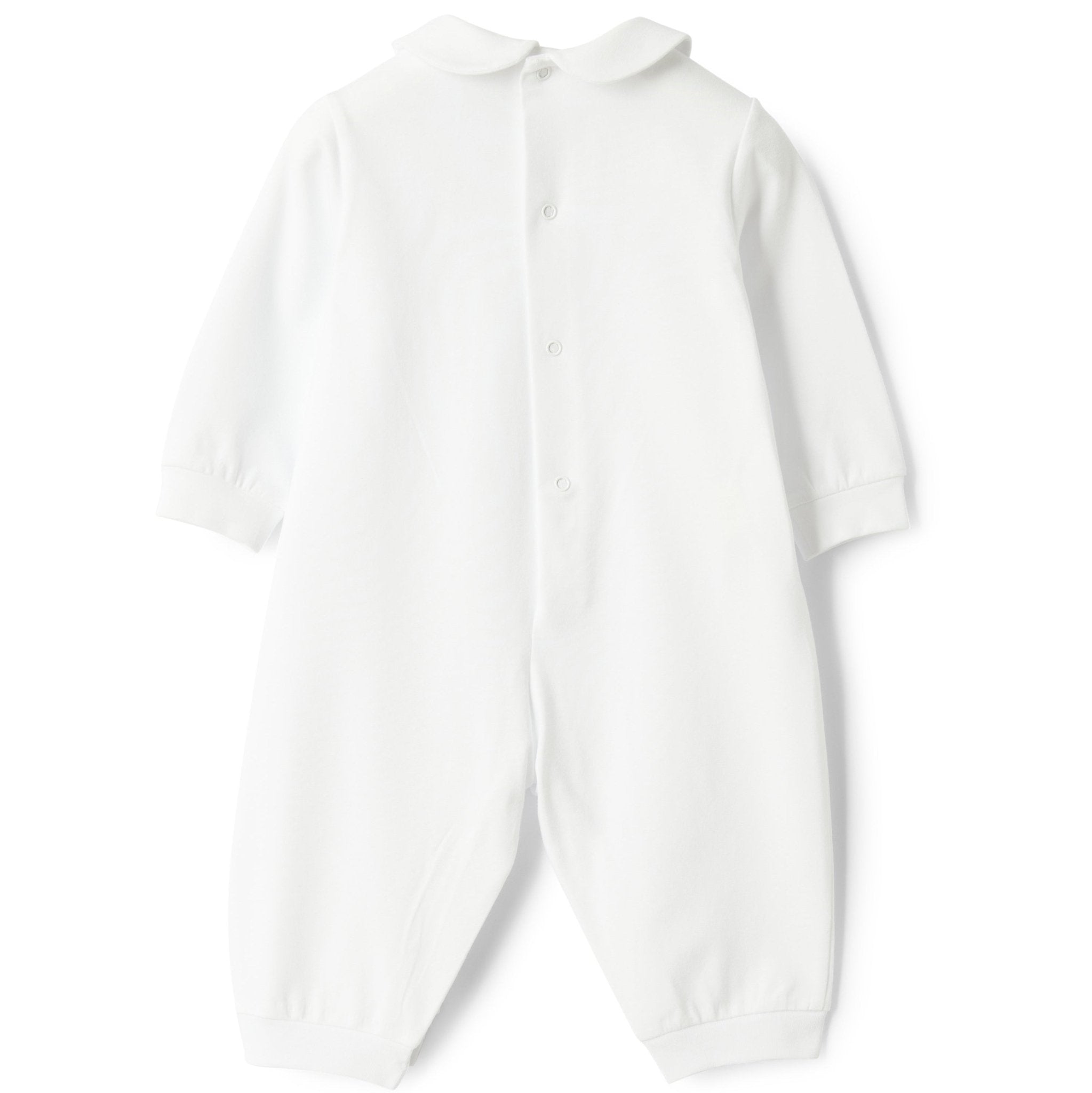 • Stretch cotton jersey baby romper, finished with a grosgrain bow applied at the front. It features a round collar and a snap-button closure at the back, ensuring a comfortable and practical fit.