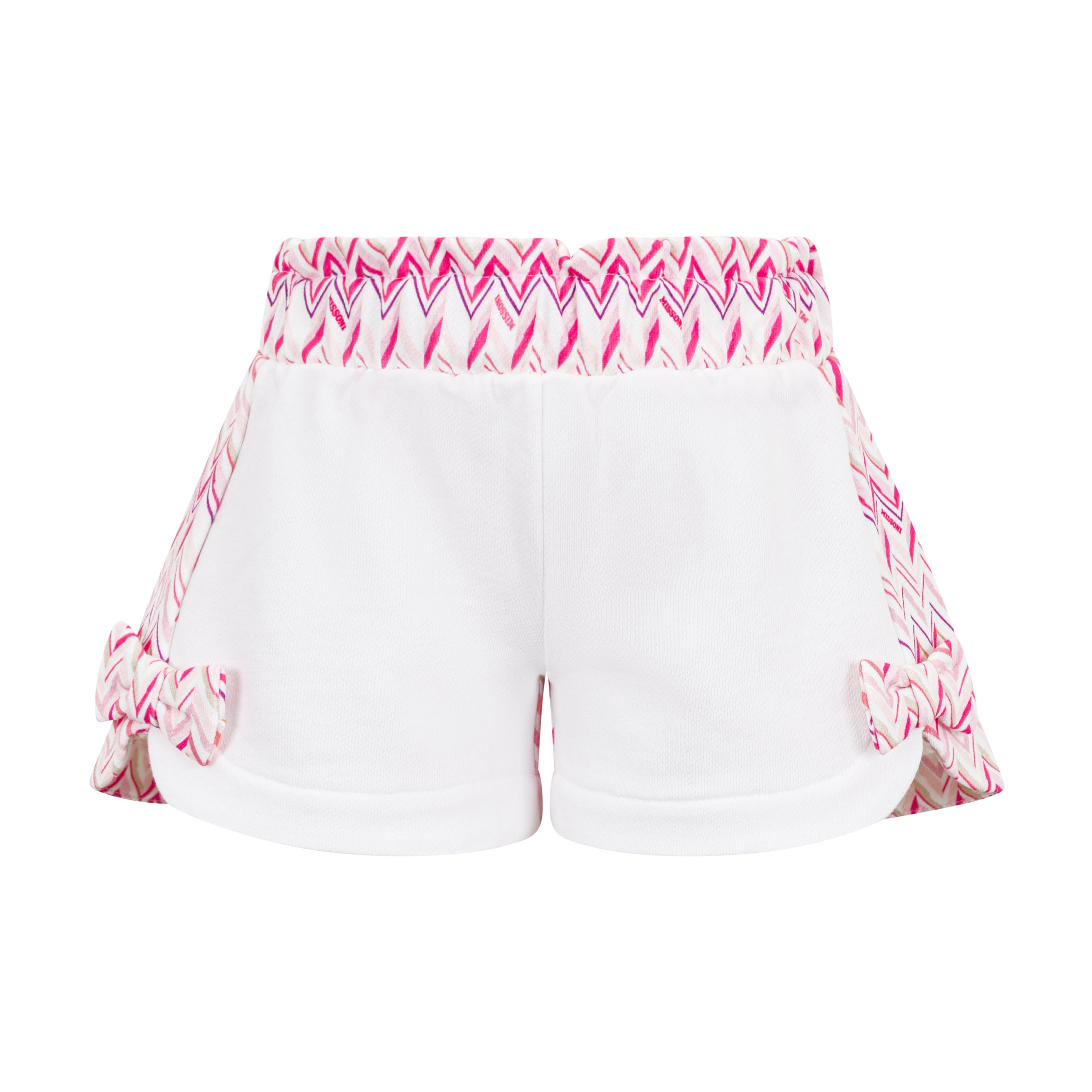 Baby cotton shorts in soft pink color from Missoni Kids. The brand is reinforced with an embossed, embroidered, multi-colored logo on the side. Elastic waistband for a comfortable fit.